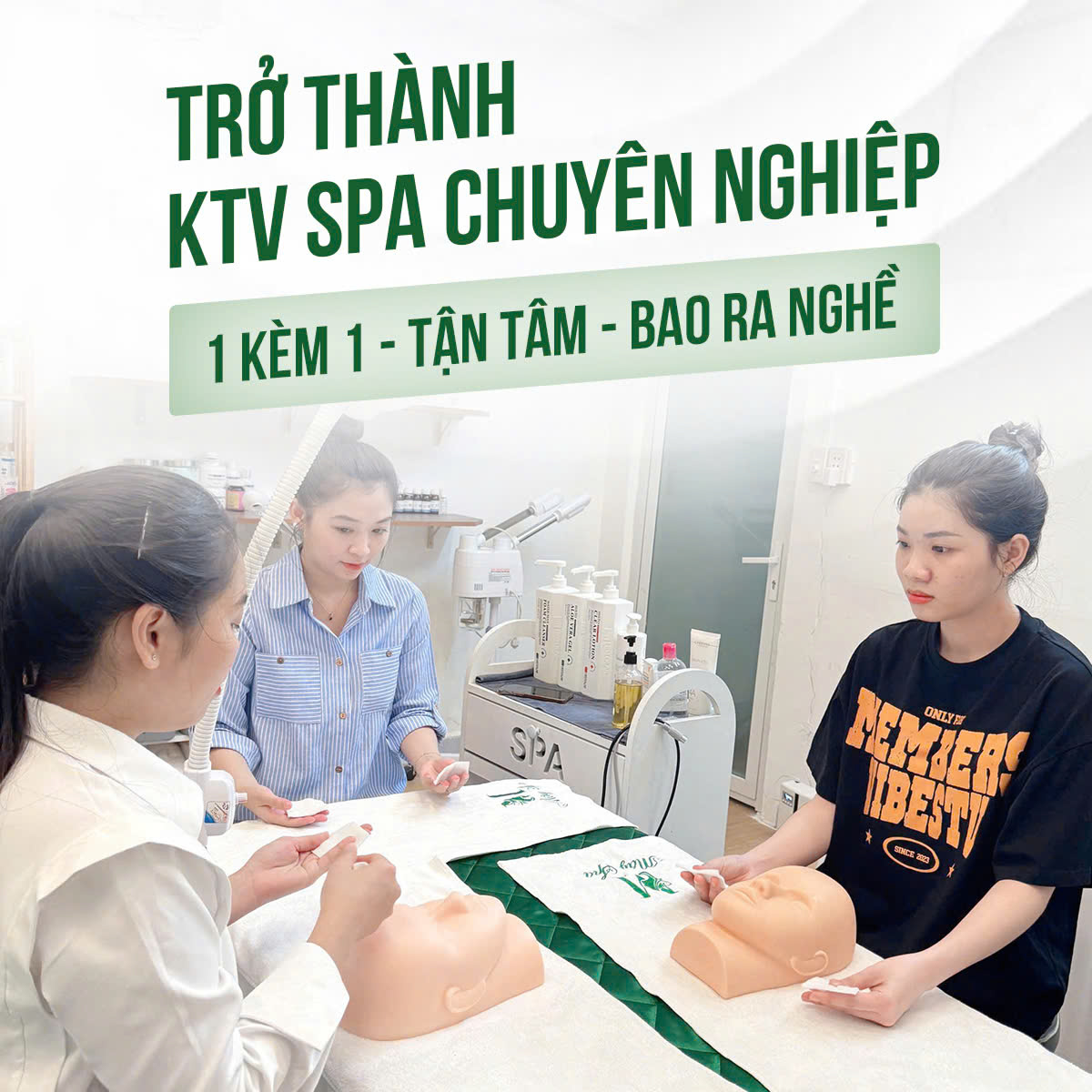 Người dạy không chỉ có kiến thức lý thuyết mà còn phải có kinh nghiệm thực tế nhiều năm trong ngành spa. Điều này giúp bạn học được cả kỹ năng tay nghề lẫn cách xử lý các tình huống thực tế với khách hàng.